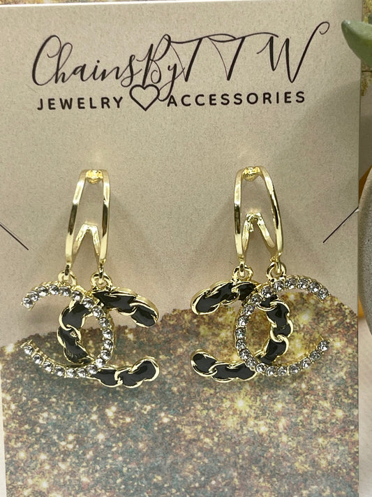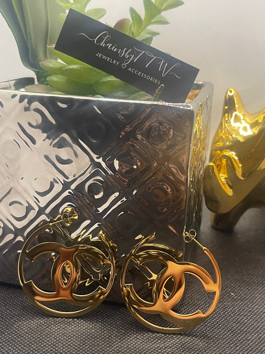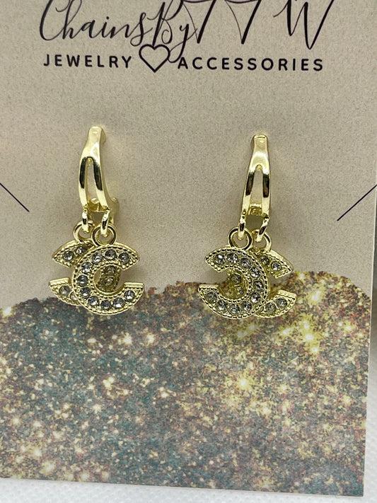 C is for Carmen Dangle Quilted Gold Hoop Earrings