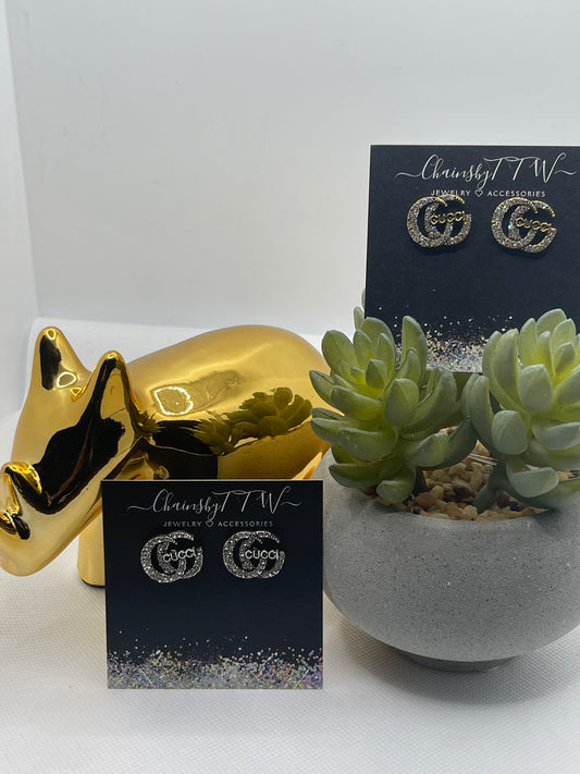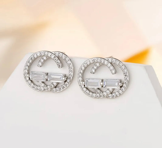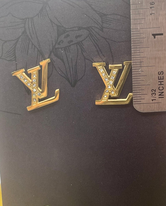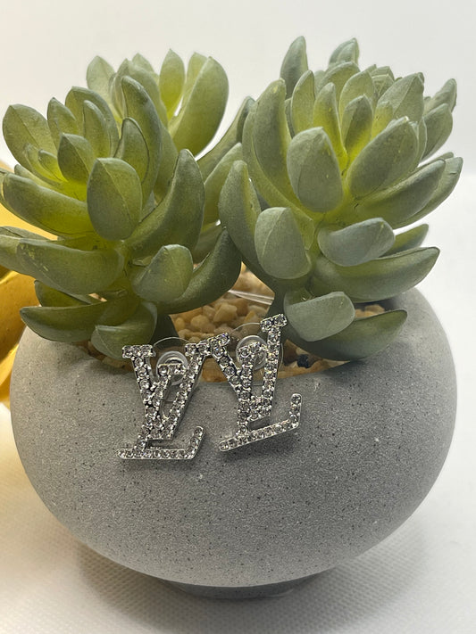 High Glamour Initial L & V Fashion Rhinestone Earrings