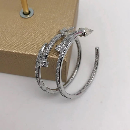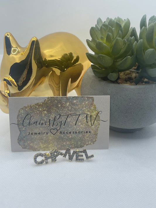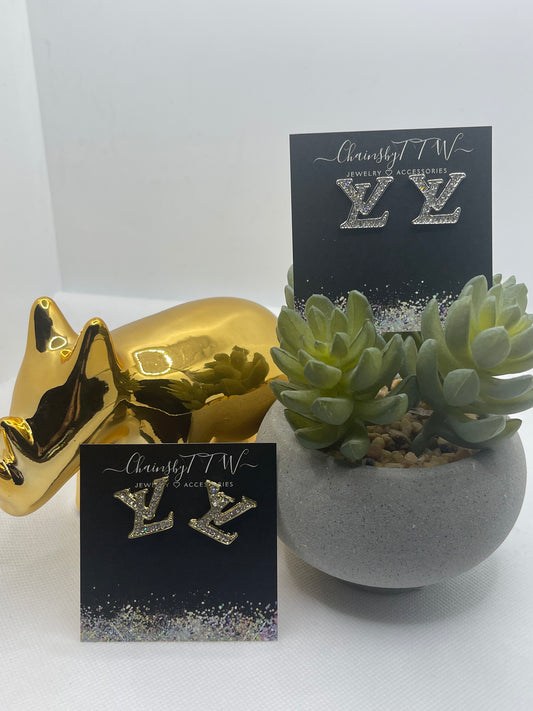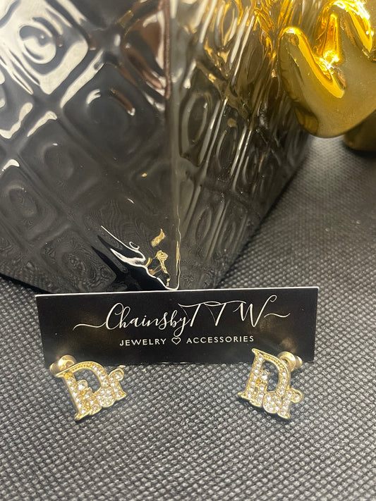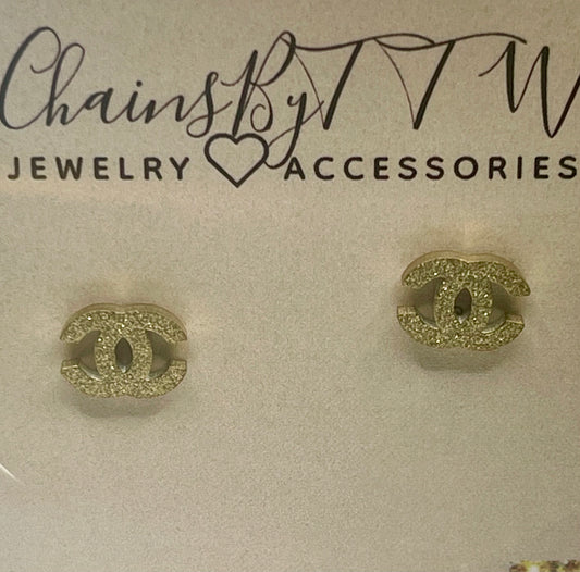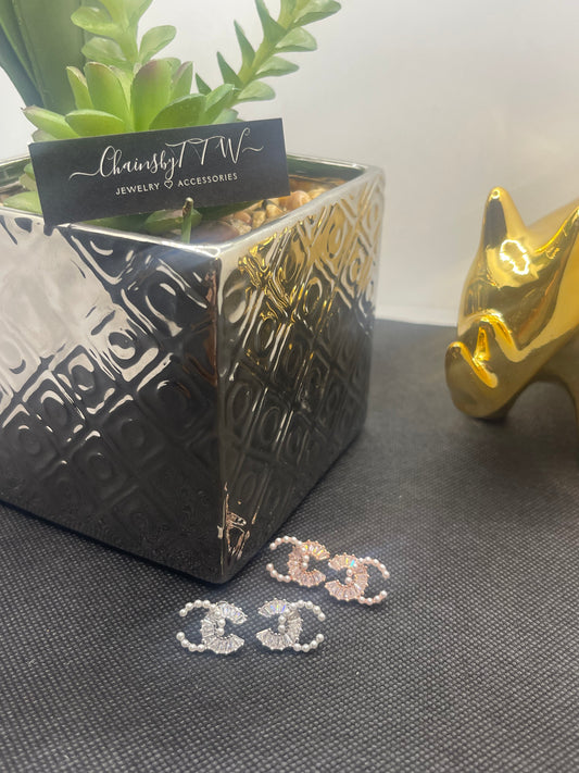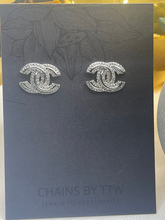 Outline Double C Rhinestone Earrings, Gold or Silver