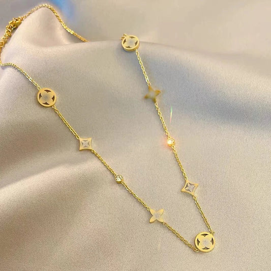 Etched Vintage Vibes Lucky Clover Gold or Silver Necklace