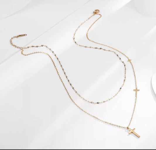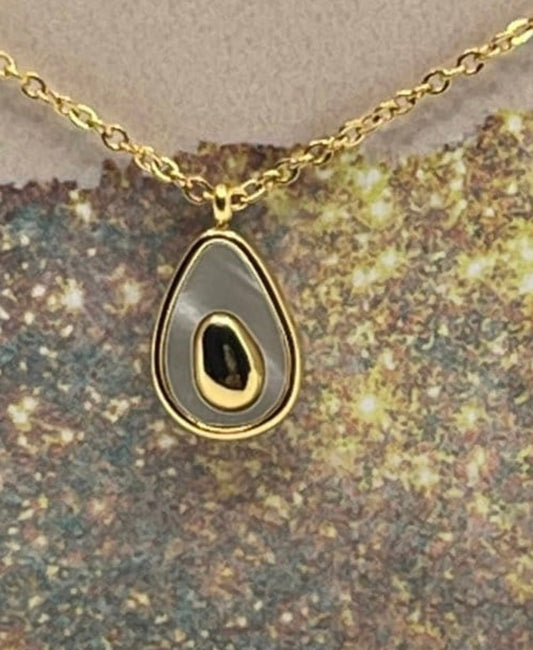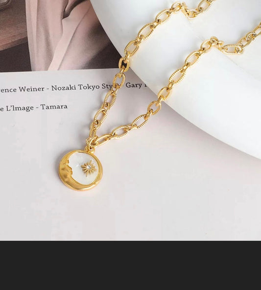 Gold Chain Moon Necklace with Mother of Pear Accents