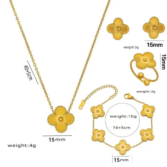Clover Style Jewelry Suite Gift Set (4-piece set) Gold