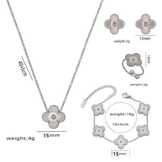 Silver Tone Clover Style Jewelry Suite Gift Set (4-piece set)